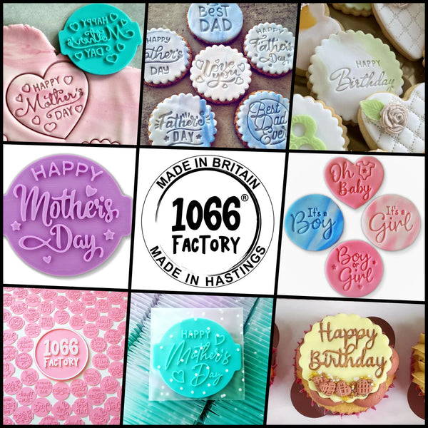 We recommend coating the stamps with icing sugar before stamping to help release the fondant. Use warm water, soap, and a small brush for cleaning. Do not put it in the dishwasher or hot water. High temperatures can cause the stamps to warp and bend. The stamps are 3d printed with the best possible quality, but there may be some minor imperfections due to the nature of the 3d printing process. The colour of the item may differ from the picture. Some photos are mirrored to make the writing on the stamps easier to read.